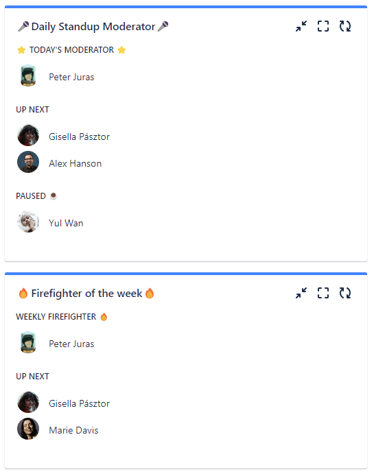 You can customize all labels of the rotation gadget, to tailor the rotation to the specific needs of your team and dashboard.